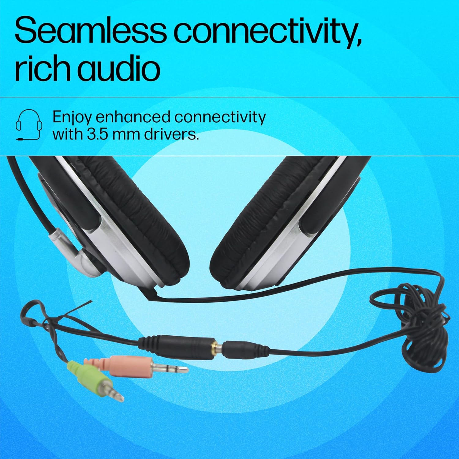 HP Wired On-Ear Headphones with Mic (B4B09PA), Noise-Cancelling, 3.5mm