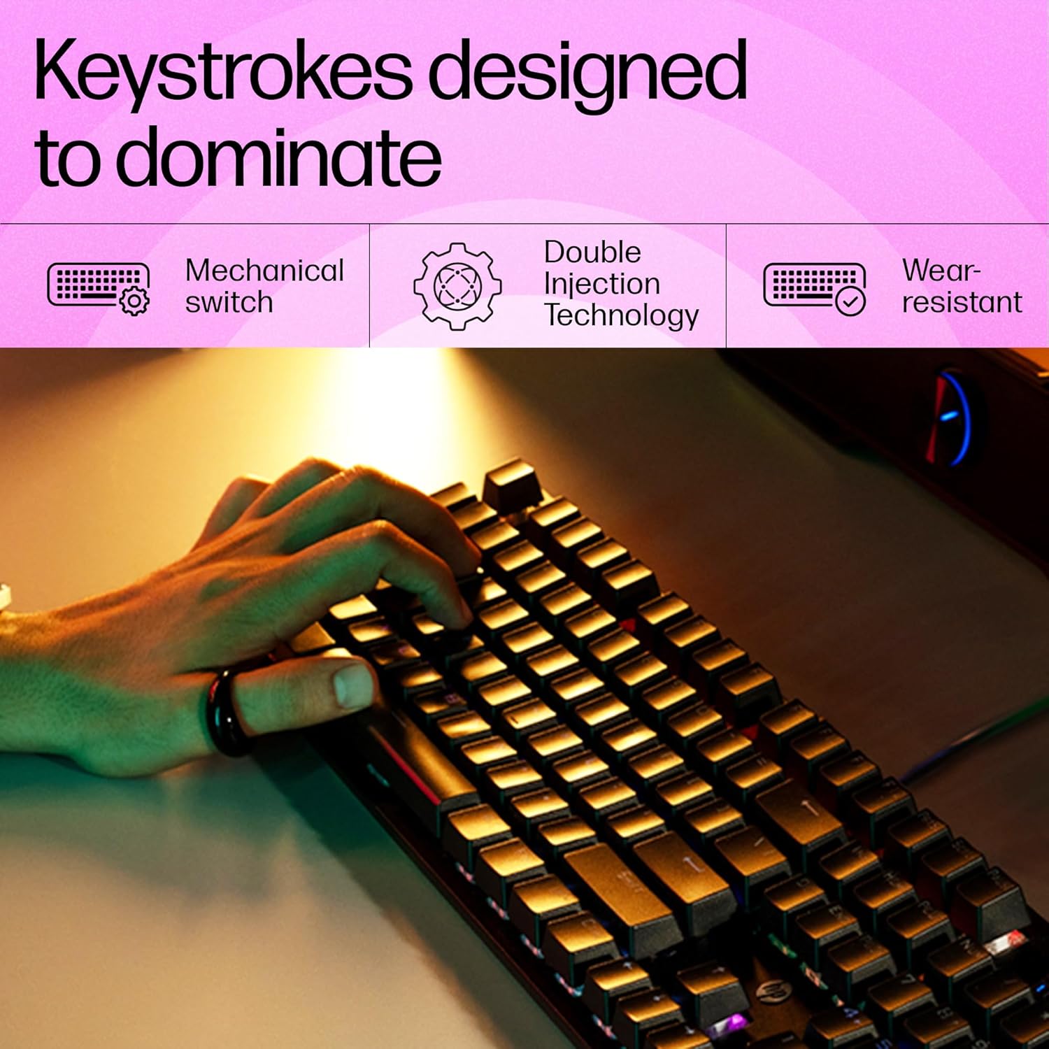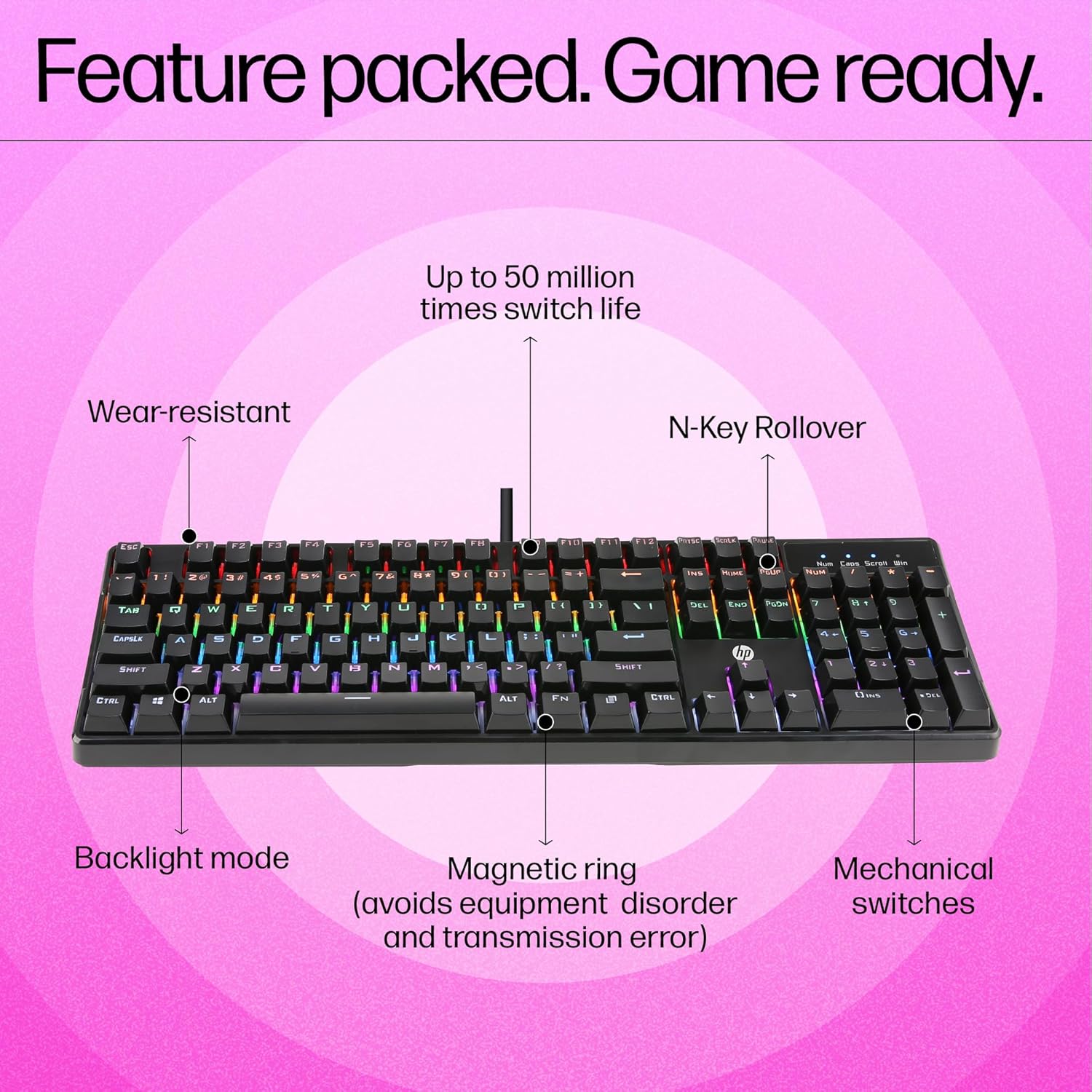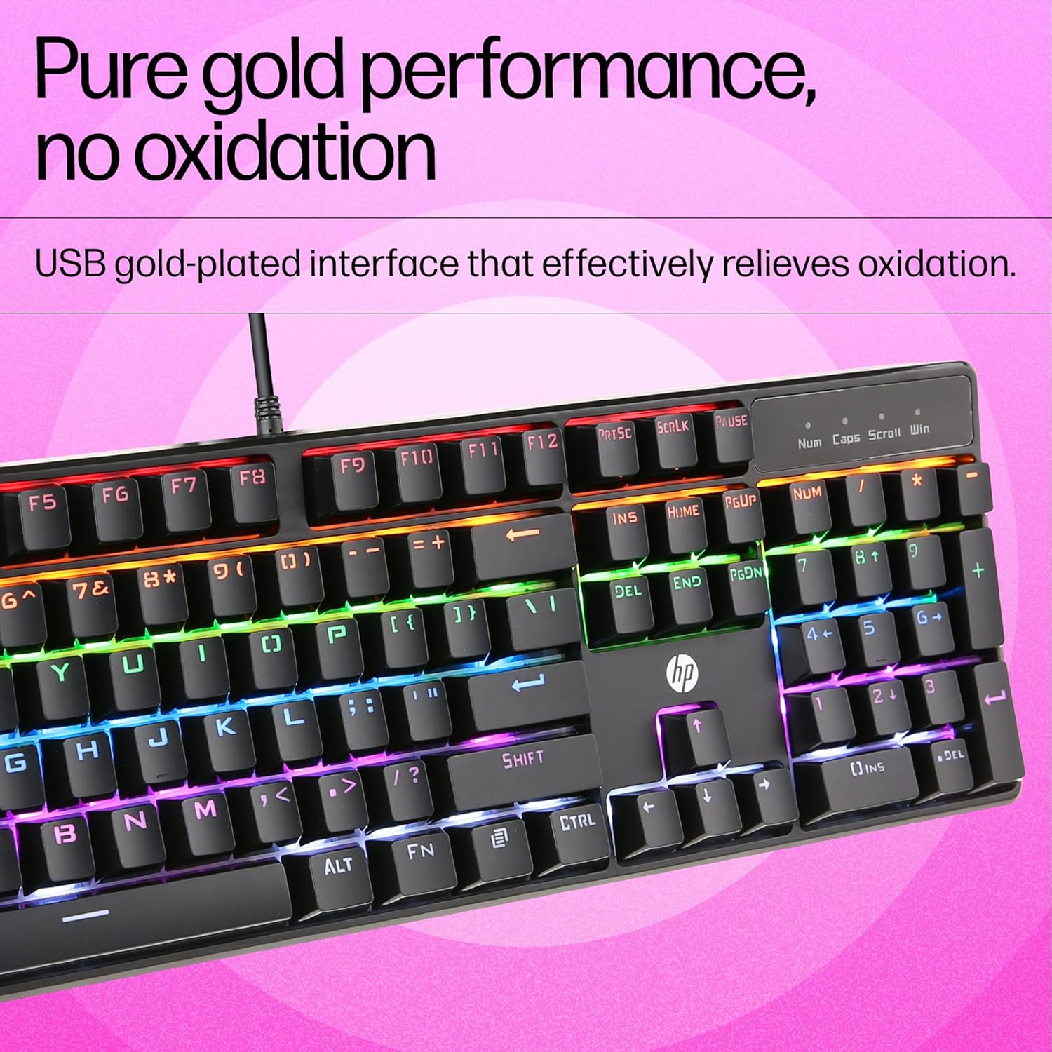 HP GK320 RGB Mechanical Gaming Keyboard, Wired, Full-Size, 4 Indicators