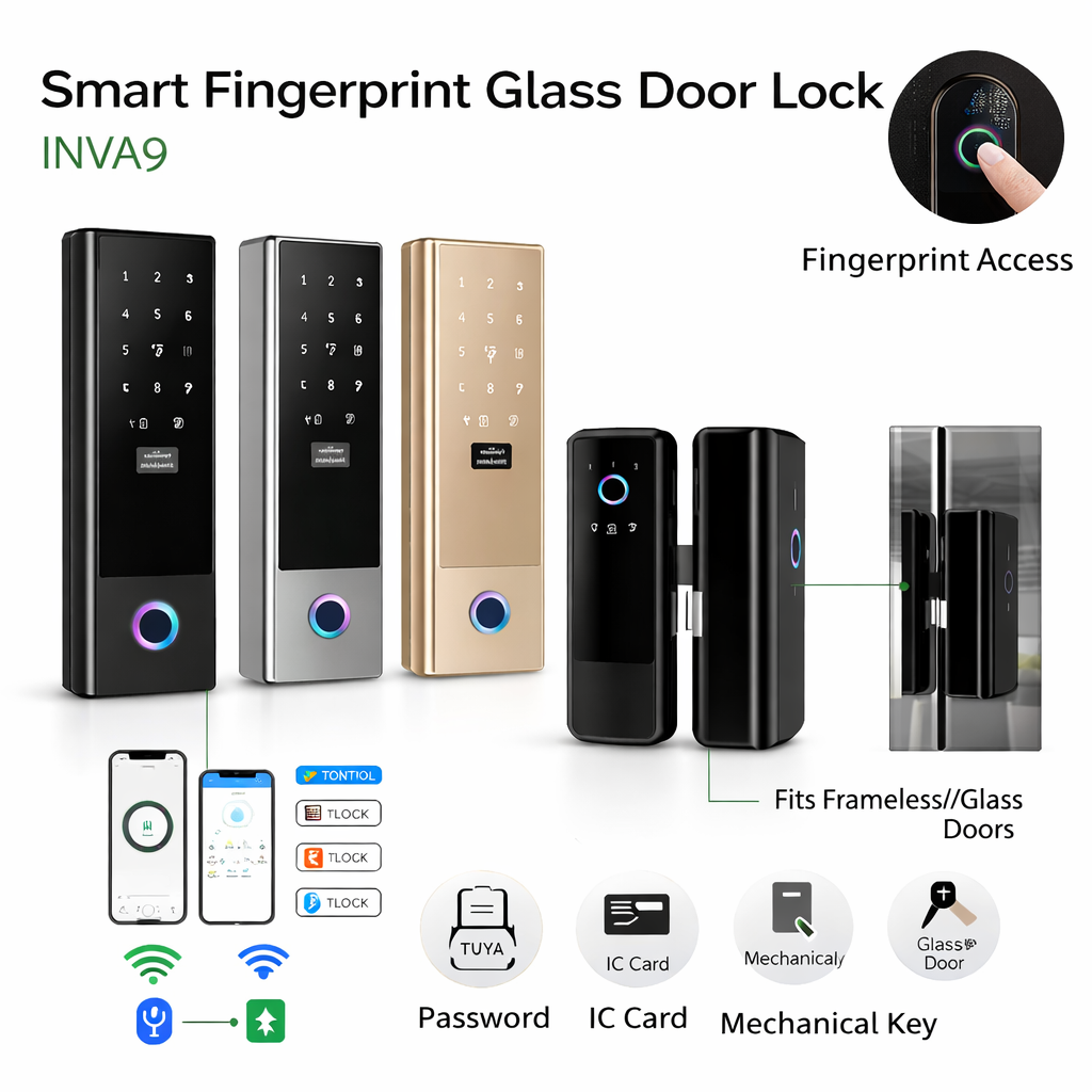 Smart Fingerprint Glass Door Lock with App Control – INVA9